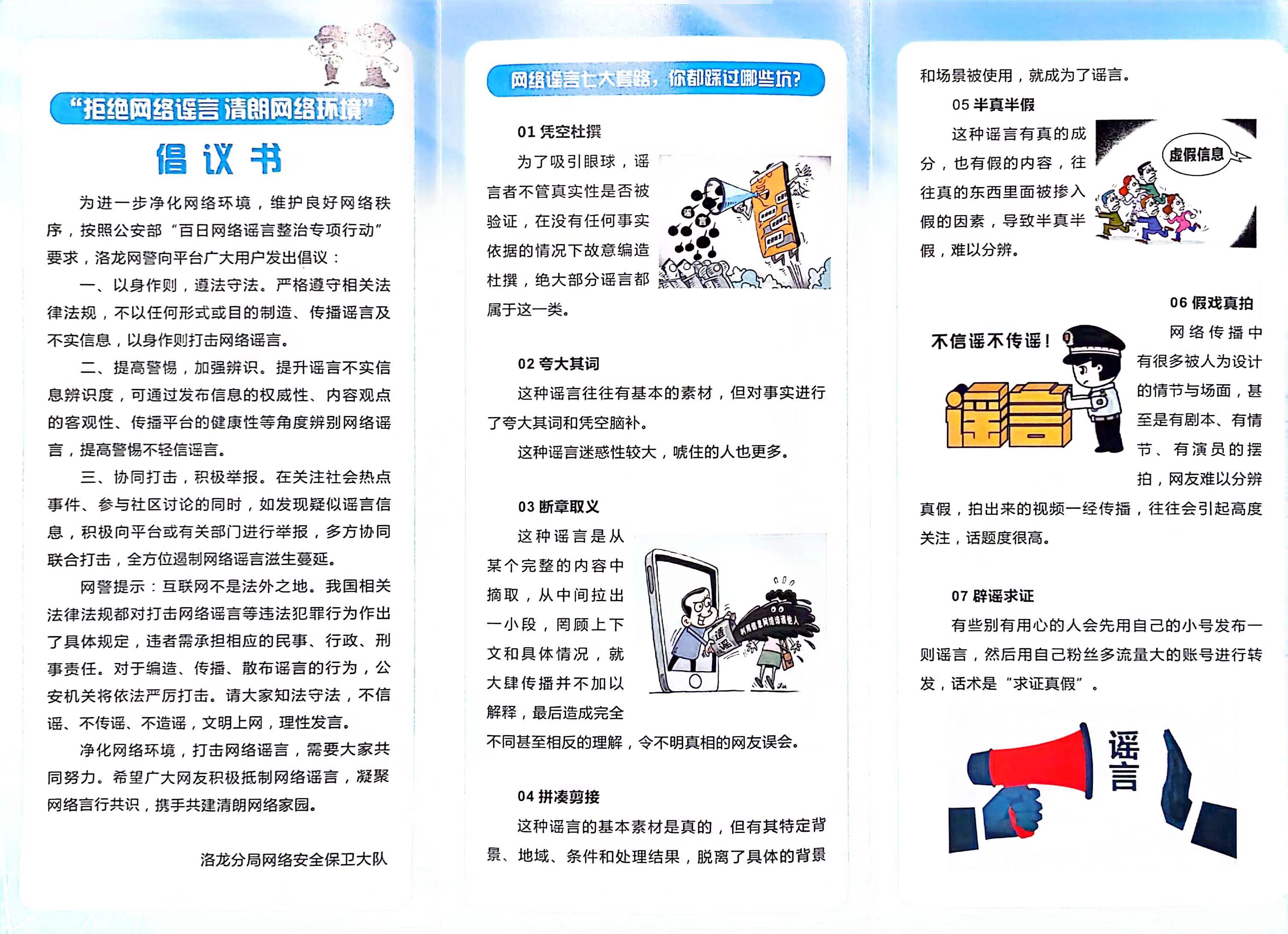 2024年6月21日,郑州良政数据科技有限公司安排公司员工到洛阳市公安局洛龙分局网络安全保卫大队参加了关于网络谣言的普法宣传活动。活动中网安民警带领大家共同学习了网络谣言的相关法律知识和打击网络谣言的真实案例。通过此次学习,大家进一步认清了网络谣言的危害,纷纷表示不信谣不传谣从我做起,共同维护清朗和谐的网络空间。
